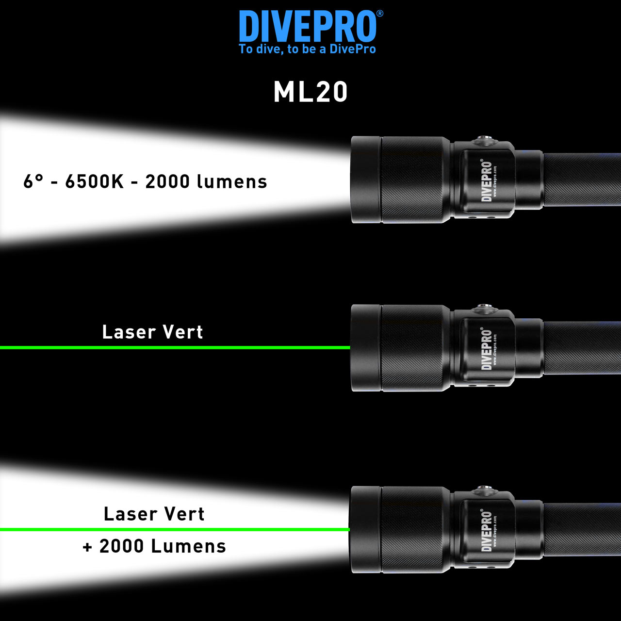 Lampe torche de plongée pour l’exploration sous-marine avec un laser vert intégré.