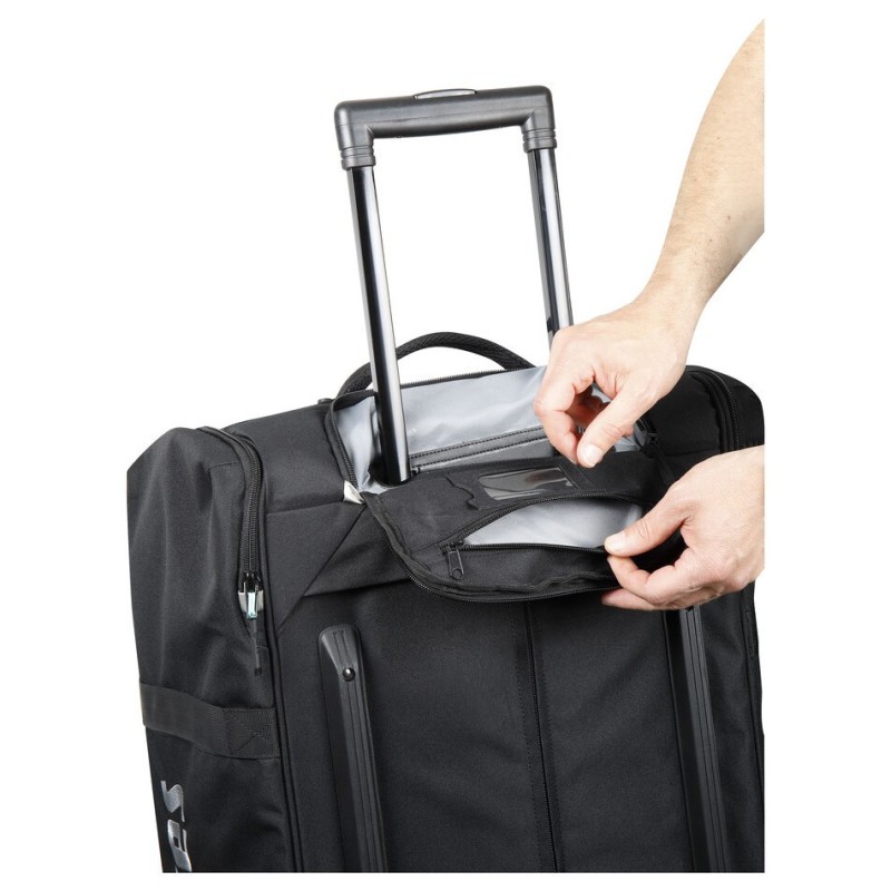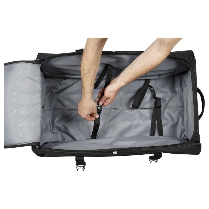 Le grand volume du compartiment interne garantit la possibilité de ranger confortablement tout l’équipement, désormais plus facilement manœuvrable grâce à la stabilité garantie par la plus grande distance des grandes roues du sac.